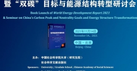 2021年11月14日,《世界能源发展报告2021》(《世界能源蓝皮书》)发布会暨&ldquo双碳&rdquo目标与能源结构转型研讨会通过线上视频会议方式举行。该报告由中国社会科学院研究生院原院长、国际能源安全研究中心主任黄晓勇主编,...