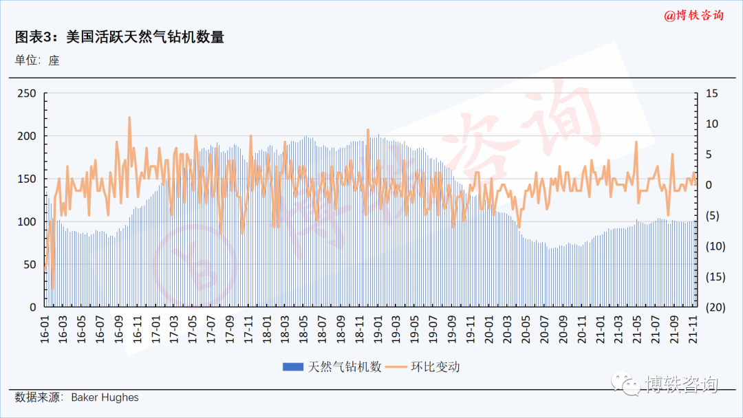 截至本周五(11月24日),美国活跃天然气钻机数量为102座,与上周五(11月19日)持平。