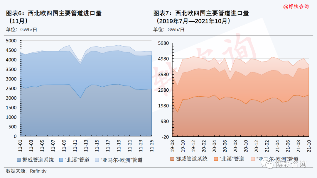 其中,挪威管道系统供应量小幅下滑,本周四(11月25日)为2476GWh/日。
