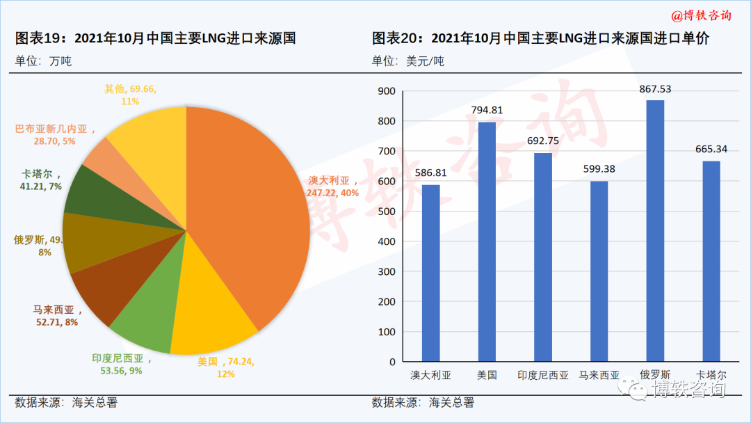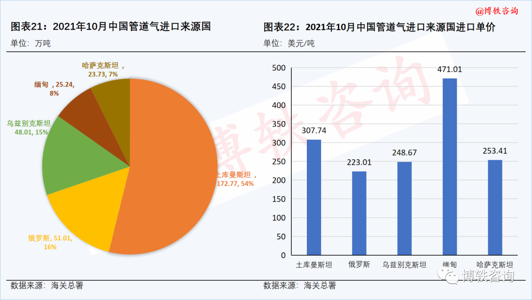 在亚洲部分,根据中国海关总署数据,对10月份中国天然气进口结构和单价进行了分析。