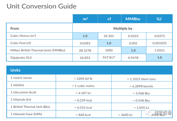目前,在国际天然气市场中,多种计量单位并存。在此,特对本周报内使用的单位进行说明。