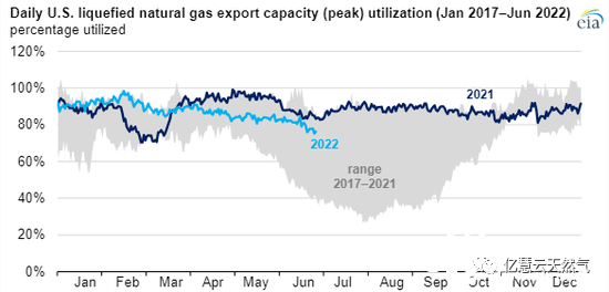 根据美国能源信息署(EIA)7月25日援引国际天然气协会(CEDIGAZ)数据称,由于在乌克兰危机中增加了对欧洲的供应,美国在2022年上半年成为最大的液化天然气出口国。EIA表示,与2021年下半年相比,美国今年上半年LNG出口量增长了12%,平均每日达到112亿立方英尺。