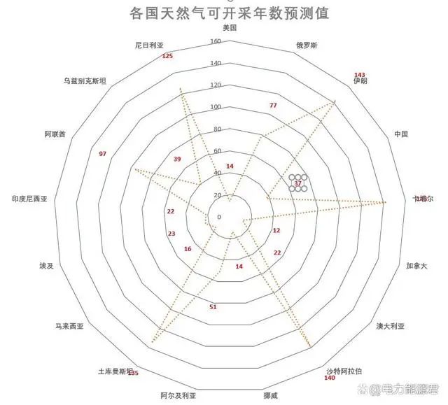 2、部分国家,如伊朗、卡塔尔、土库曼斯坦、沙特阿拉伯、尼日利亚等,天然气可开采年数都超过了100年,但这些国家基本上经济和发展状况总体并非太好,都还有很大进步空间,似乎说明仅有储量、开发进程相对滞后也是不太好的,能在合理的年限内开发利用为好,简单讲就是可以及时变现。