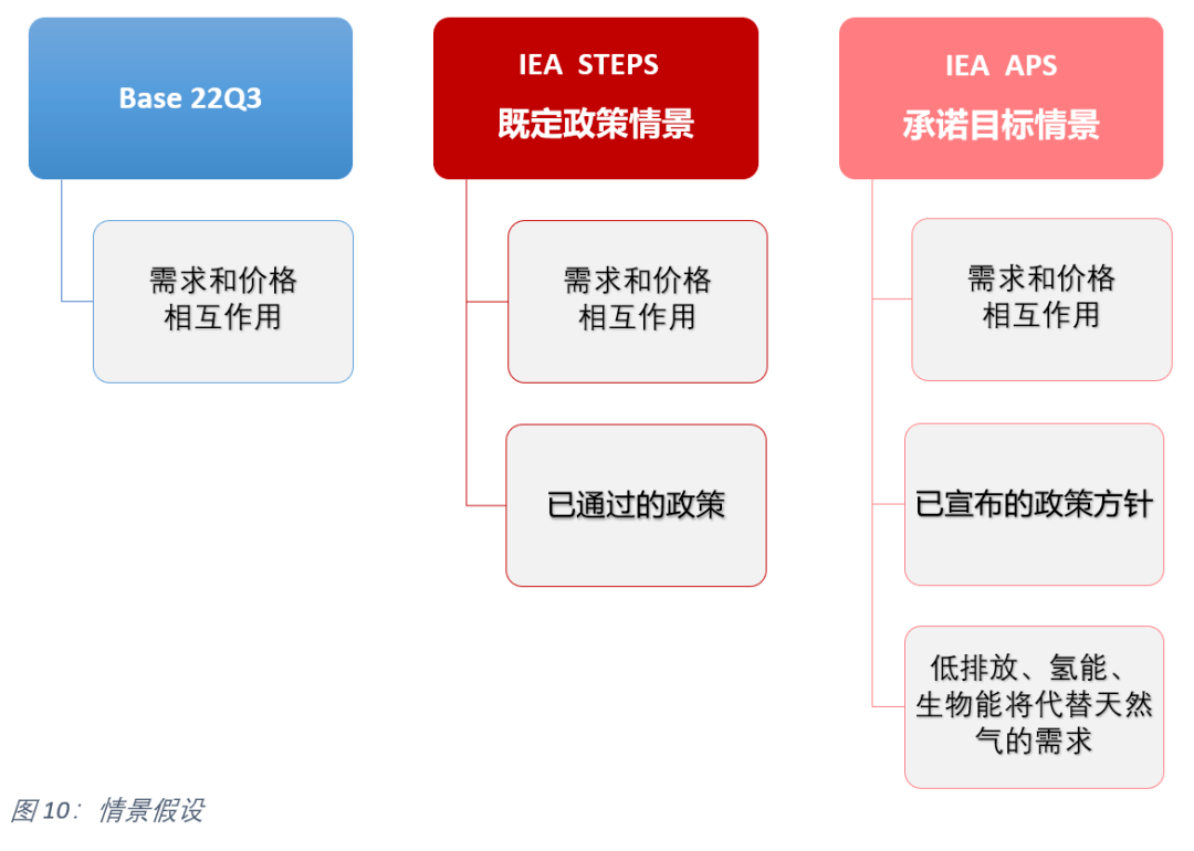 三种长期情景以递进方式估计了不同假设下对天然气市场和液化天然气交易的影响,图10中展示了假设比较。