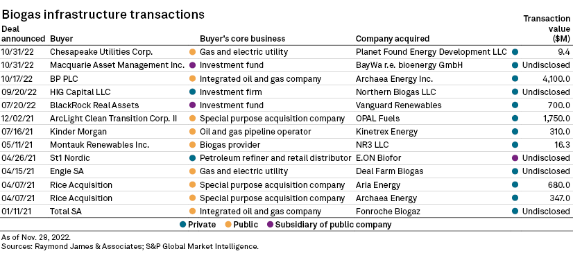 表 2021-2022期间国际沼气/生物天然气并购情况