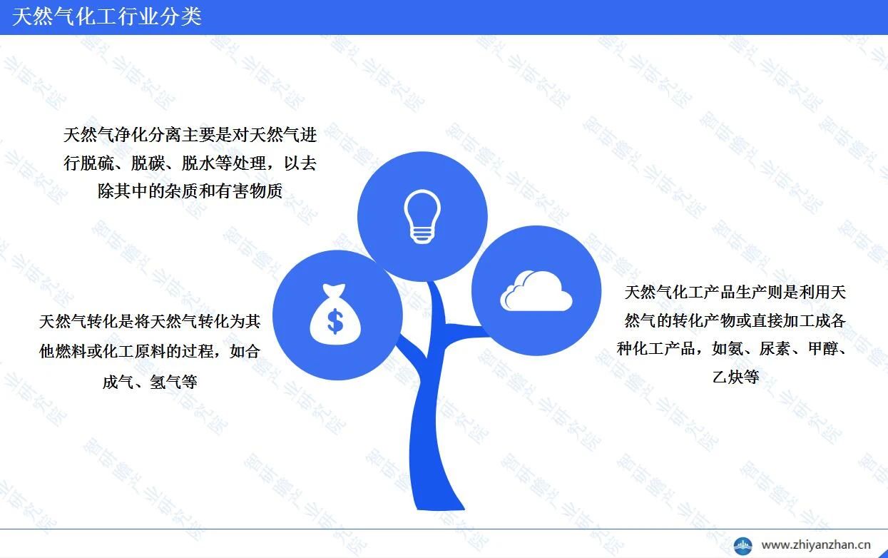 天然气化工的产业链主要包括上游、中游和下游三部分。上游主要是天然气的勘探生产,中游为运输,下游则是分销。天然气,凭借其经济、环保以及绿色的属性,不仅作为一种能源,更是化工的关键原料,已经在全球范围内引发了广泛的关注和大规模的应用。在最近的几年里,天然气供应在我国能源安全体系中的地位日益突出,成为了不可或缺的重要一环。在下游应用行业方面,天然气化工产品被广泛应用于各个领域。例如,合成氨、甲醇等基础化学品的生产,以及作为燃料的使用等。