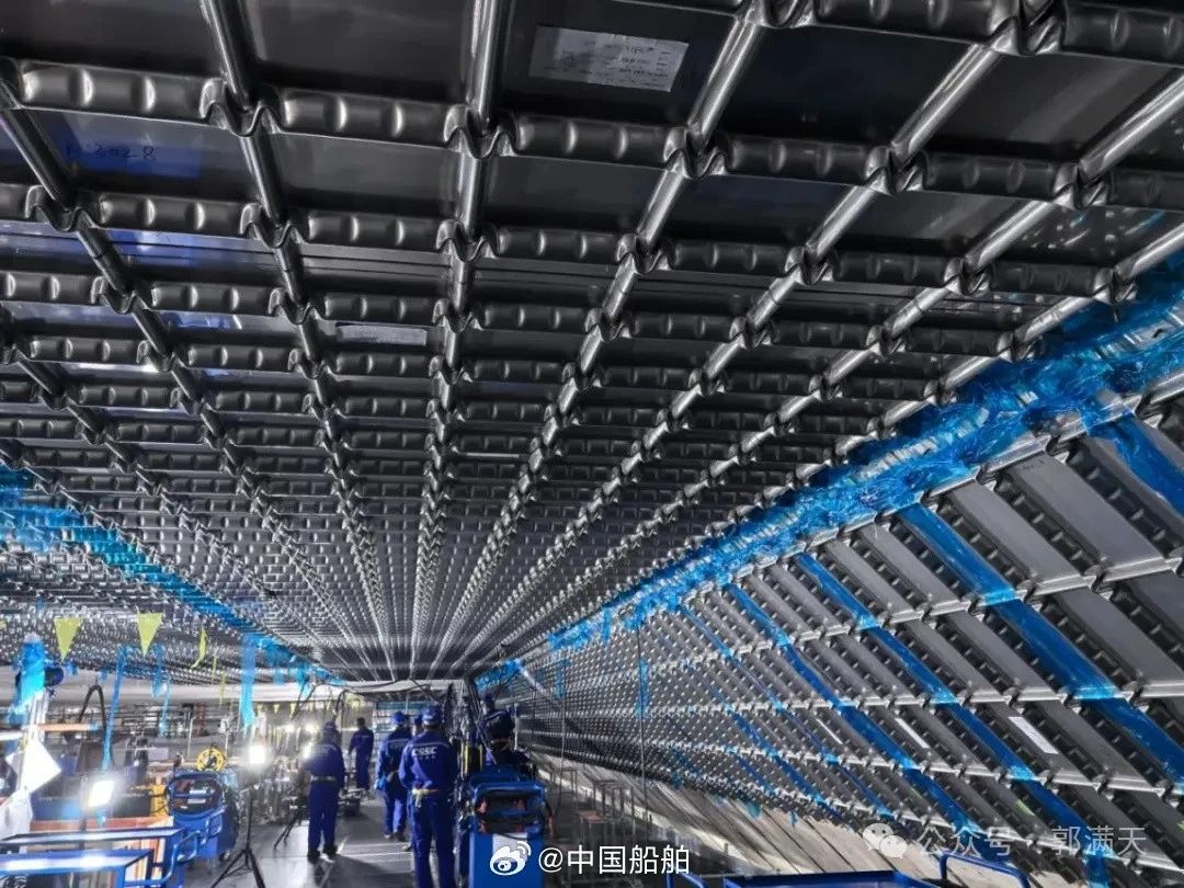 LNG船的液货仓是建造难度最大的核心设备,需承受-163℃的超低温,还要确保液密不泄漏。GTT公司的专利采用厚度仅0.7毫米的殷瓦钢板,其外部包覆或衬垫一定厚度的绝缘箱,并设置主屏壁和次屏壁,组成两道液密屏壁,两道绝热层。