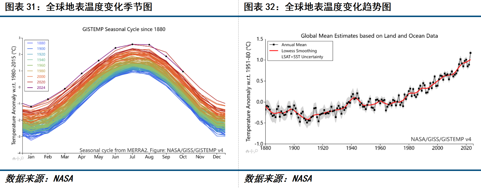 连续暖冬可能是历史趋势使然。2024年以暖冬收场已无悬念,但当前就对2025年冬季的天气状况做出判断并不现实。我们在此仅做两点经验性的讨论:一是暖冬或已由偶然转为常态。近年以来尤其2023年全球地表升温幅度较大,导致夏季炎热、冬季偏暖。但这并不意味着未来几年气温就一定会向更冷方向回归。全球地表在近200余年内持续升温且速度逐渐加快,持续三年的暖冬已经很大程度上难以用周期来解释,或是历史趋势使然。二是全球持续升温使得西风带减弱并愈发不稳定,对北极冷空气的限制效果下降。北极冷空气更易突破西风带南下形成寒潮,形成短促而剧烈的阶段性降温,导致居民需求的波动性放大,以受寒潮影响最大的德国、英国为例可显著观察到这一现象。