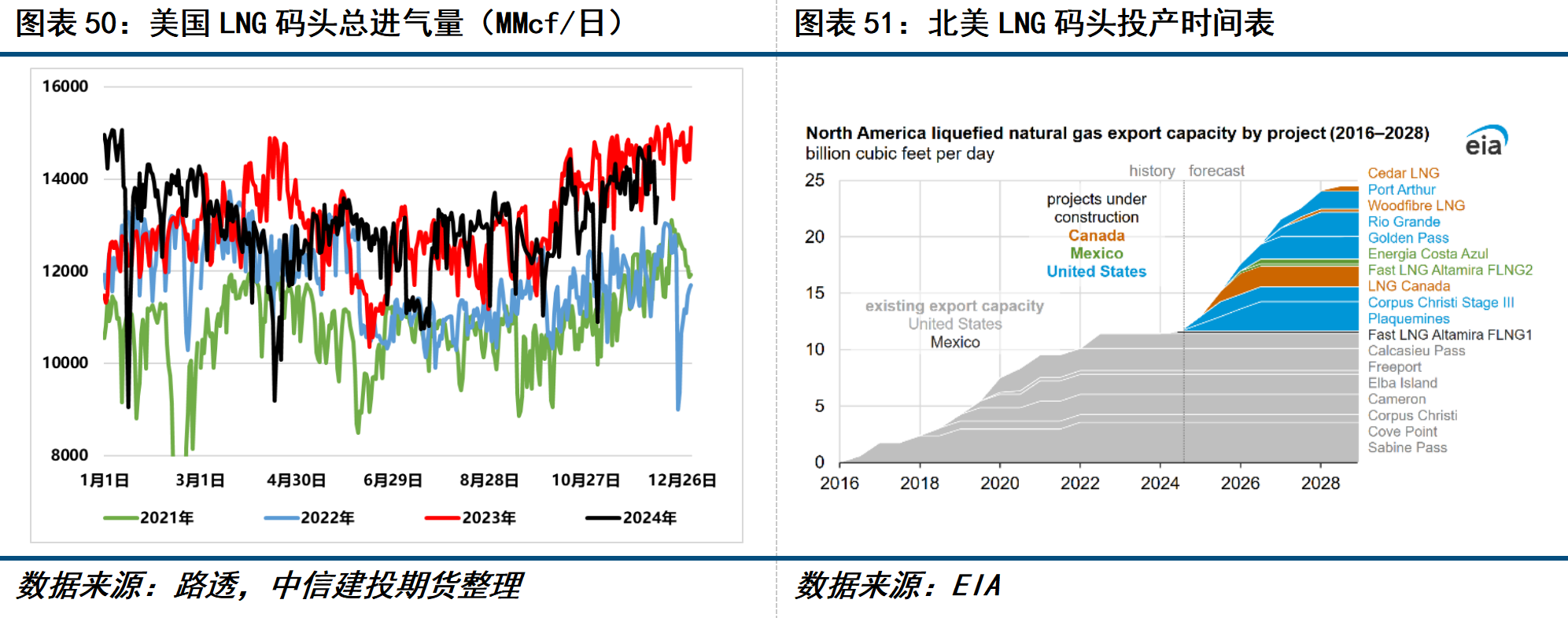美国方面,LNG码头投产、电力需求的高增将使HH摆脱2024年反复挣扎于成本线的泥潭,但庞大的潜在产能仍将限制HH的上行空间,中枢抬升、波动下降是美气市场最可能的面临的局面。