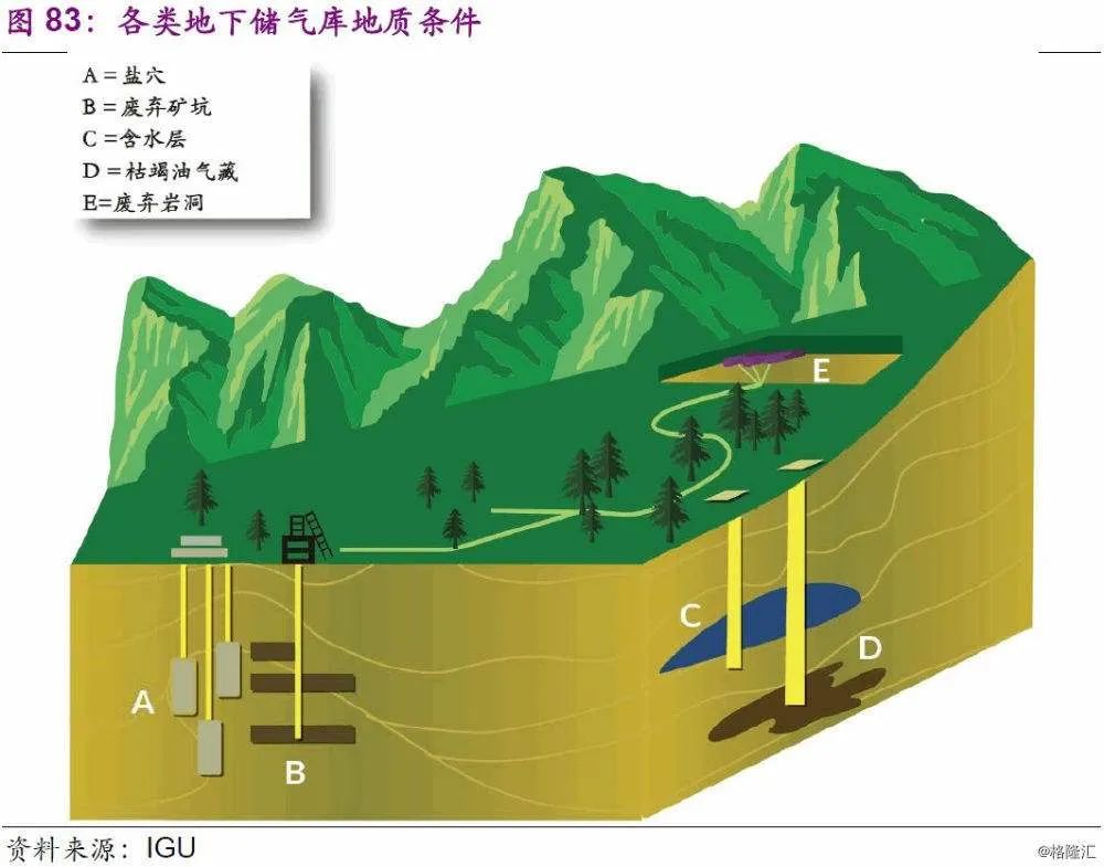 垫底气量相当多,例如相国寺、铜锣峡、黄草峡等三座储气库2025年的总库容将达到77亿立方米,工作气量可达43亿立方米,这就意味着其垫底气量约为34亿立方米。换言之,垫底气量约占总库容的38%,工作气量的79%。向储气库注入巨量天然气时需要加压耗费大量电能。选址不易、地质条件要求高。